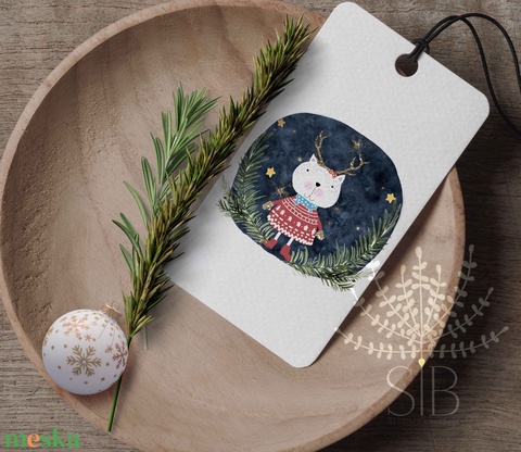 Macskás névre szóló karácsonyi ajándékkísérő, cica mintás ünnepi ajándékátadó