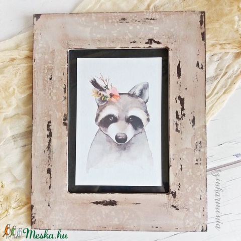 mdf képkeret, papír, vízbázisú lakk, krétafesték, akrilfestékek, repedőfesték, patina, fa