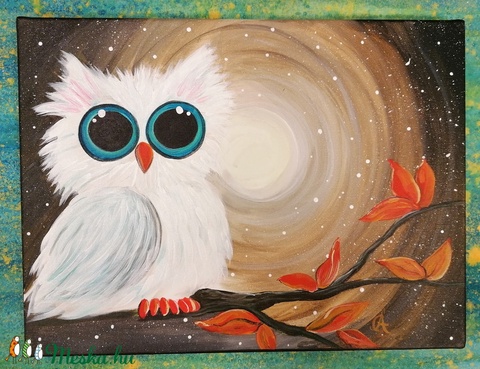 Baglyocska feszített vászon, 30×40 cm