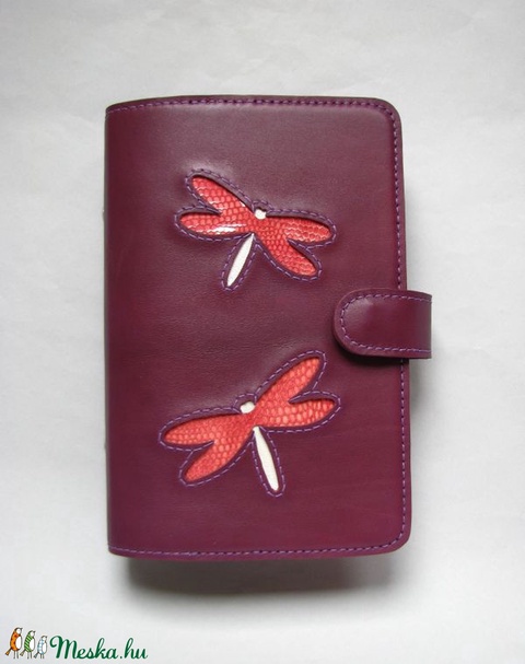 Lila szitakötő mintás bőr gyűrűs határidőnapló, kalendárium mappa