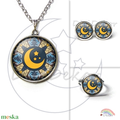 Karácsonyi mandalás nyaklánc, téli éjszaka, holdas csillagos ünnepi medál, mandala mintás karácsonyi ékszer