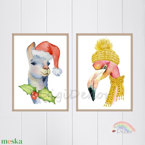 Vicces, állatos faliképek gyerekszobába, láma, flamingó, karácsonyi dekoráció, ajándék gyerekeknek, télapó, ünnep, tél