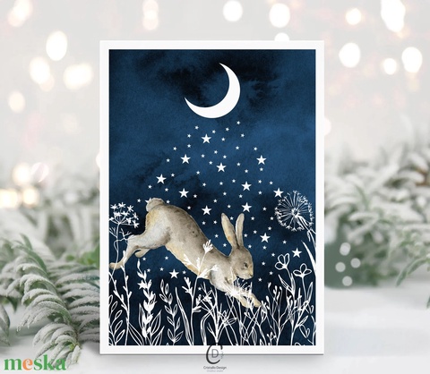 Karácsonyi képeslap, üdvözlőlap, erdei állatos ajándékkísérő