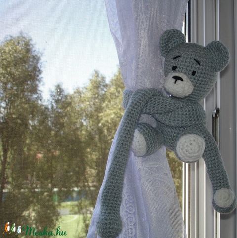 Függöny összekötő - függönyfogó horgolt játékfigura maci szürke