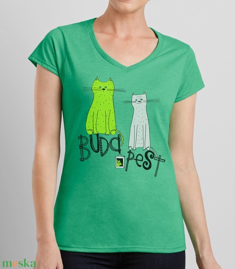 AKCIO: Két cica Budapest tetején - emlék a fővárosból, zöld női póló