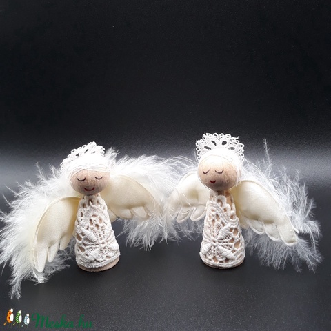 Angyalka pár- fából és csipkéből- toll szárnyakkal
