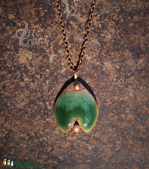 Tulipán formájú tűzzománc medál, kis méretű, sötétzöld