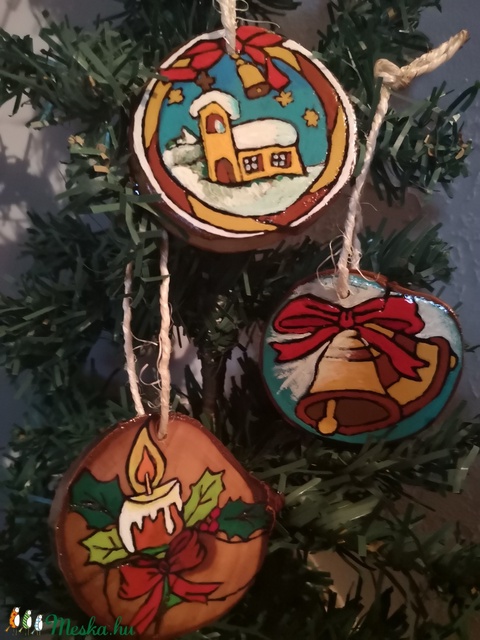 Festett fa karácsonyfadísz (3 db)