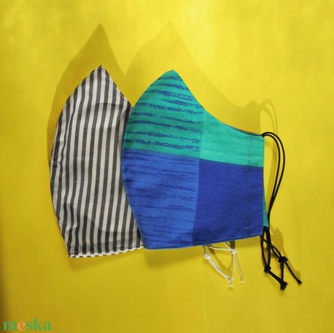 2 db kék-zöld és szürke csíkos-kockás M méretű arcmaszk