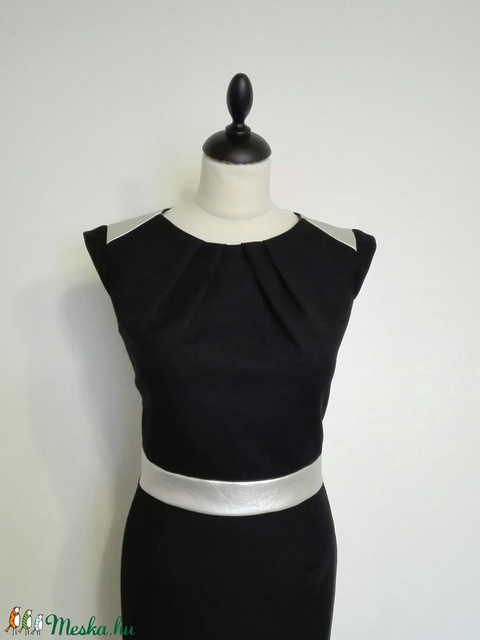 Bőrbetétes fekete szövet ruha