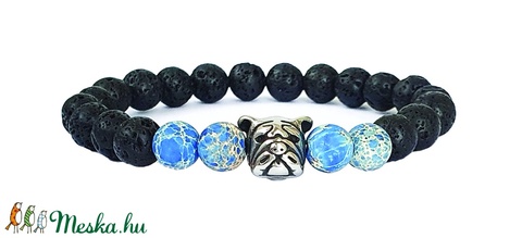 Kutyafejes láva-kék regalit férfi ásvány karkötő