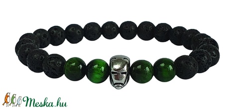 Vasember láva-zöld tigrisszem férfi ásvány karkötő