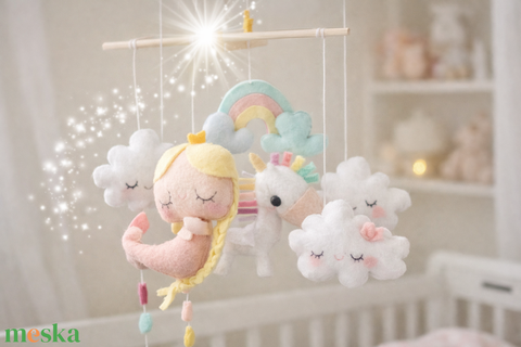 Hercegnős Babaforgó, Unikornis, Egyszarvú, Hercegnő, Kiságy forgó, Kismama, Babaszoba, Lány baba, Babaváró
