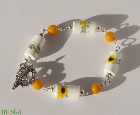 - Anyaga: porcelán gyöngy, üveggyöngy, ezüst színű karika, t-kapocs, szerelőpálca, kerámia