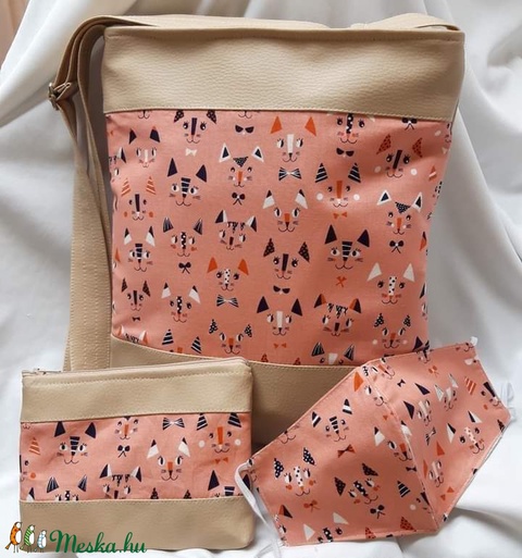Textilbőr oldaltáska+neszesszer+maszk szett