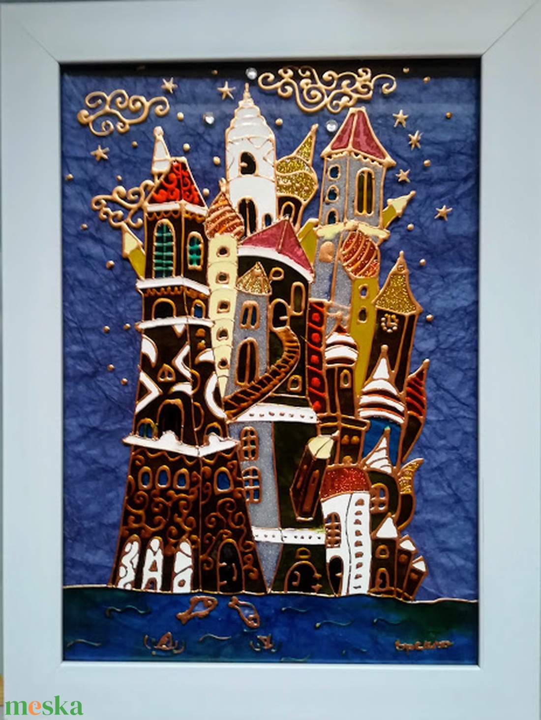 Kristály palota. Mesés kép gyerekeknek. Dekorációs falikép, üvegfestmény.