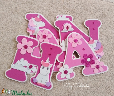 Unikornis mintás magenta név 15cm babanév falmatrica bababetű dekorgumi
