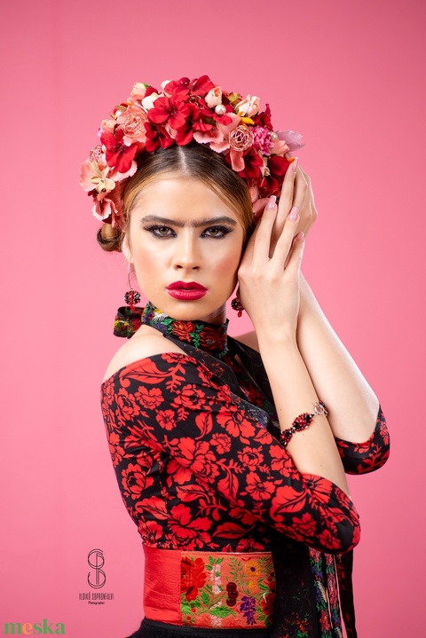 Creabead Design piros-fekete elegáns ékszerszett Swarovski kristállyal