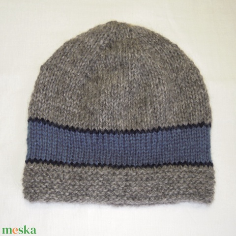 Gyapjú, kötött, férfi sapka - szürke, kék csíkos