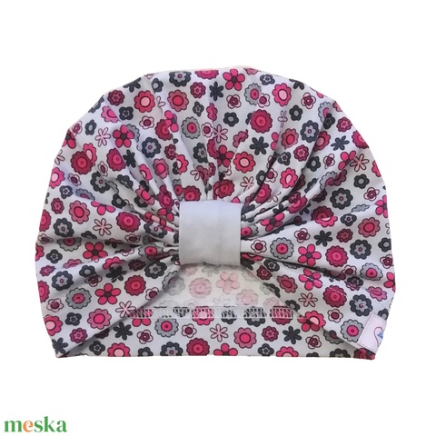 Tavaszi, őszi turbán sapka, virágok, szürke