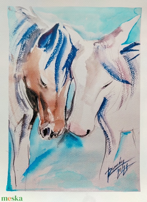 " Együttlétben" Akvarell festmény, lovak, ló, barátság, szerelem