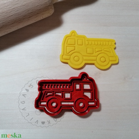 Tűzoltóautó - süteménykiszúró forma, sütipecsét. Sütikiszúró. Linzer, mézeskalács, keksz kiszúró