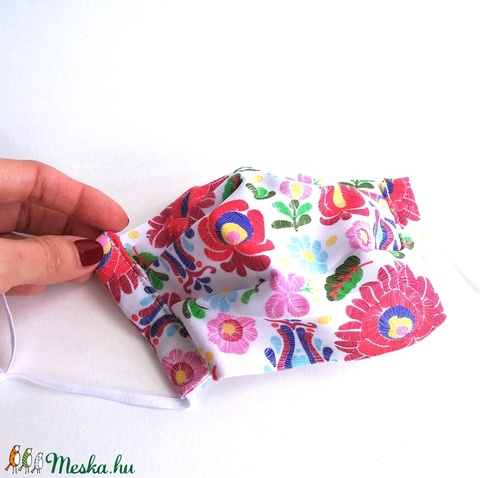 Kétrétegű, matyó mintás virágmintás szájmaszk - fehér