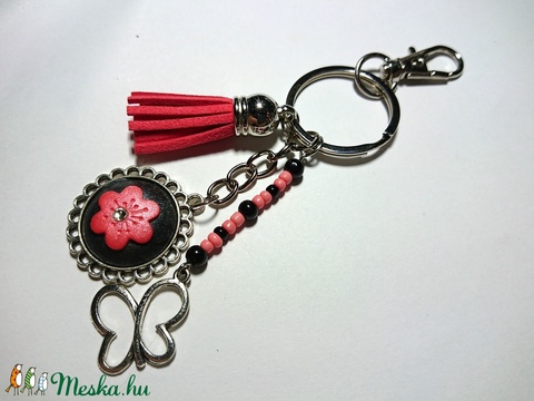 virágos gyurma medálos táskadísz kulcstartó üveg kristály díszítéssel többféle variációban