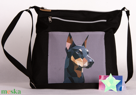 Ezt a táskát Ali a dobermann ihlette. Imádjuk a kutyás mintákat, így megszületett ez a strapabíró táska. Az XXL modell kistestvére -