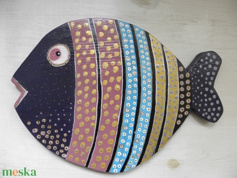 Csíkos hal - Egyedi, naiv stílusú festett fa