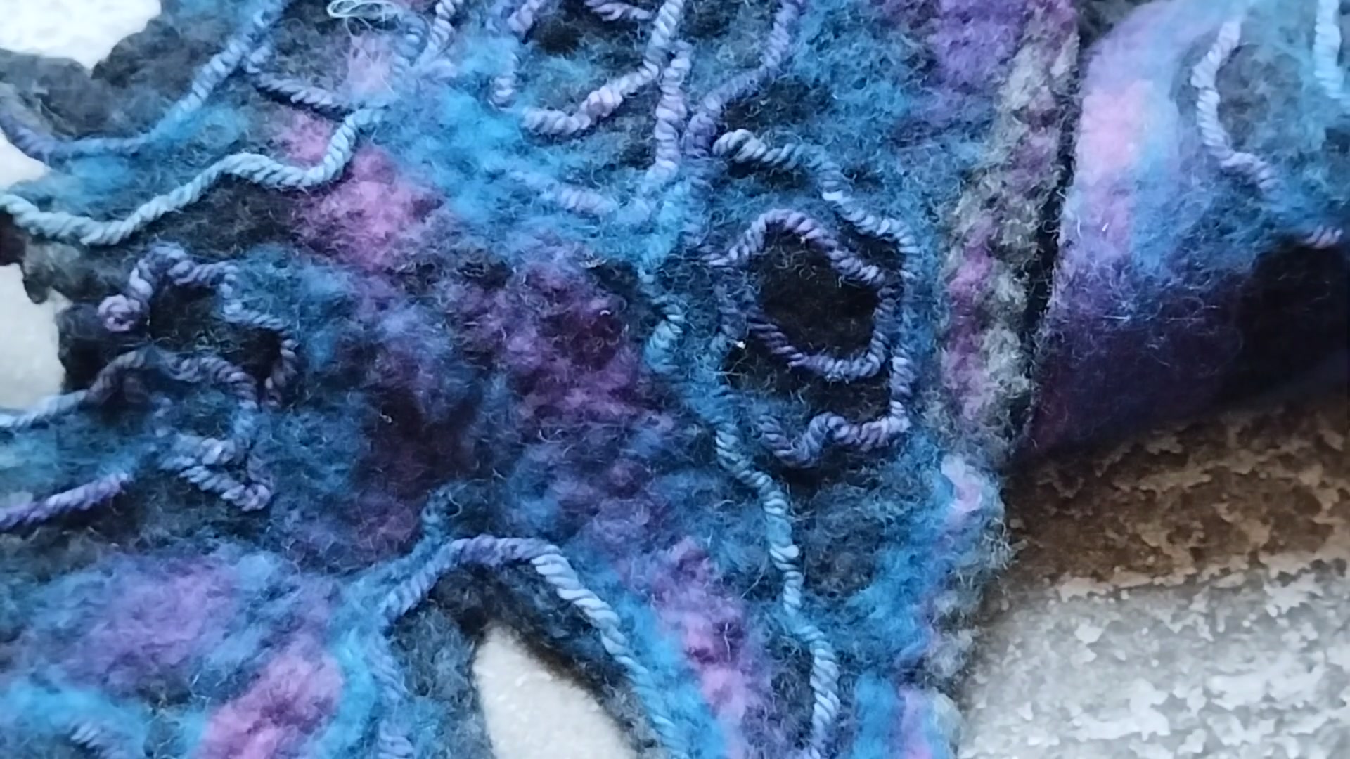 Nemezelt nyakmelegítő hosszú gyapjú sál loop rojtokkal sötétkék