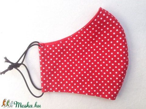 Arcmaszk, szájmaszk 2 rétegű mosható, vasalható 100% pamutvászonból PIROS pöttyös