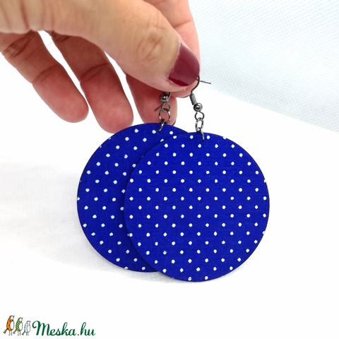 Királykék alapon tűpettyes Maxi textilfülbevaló