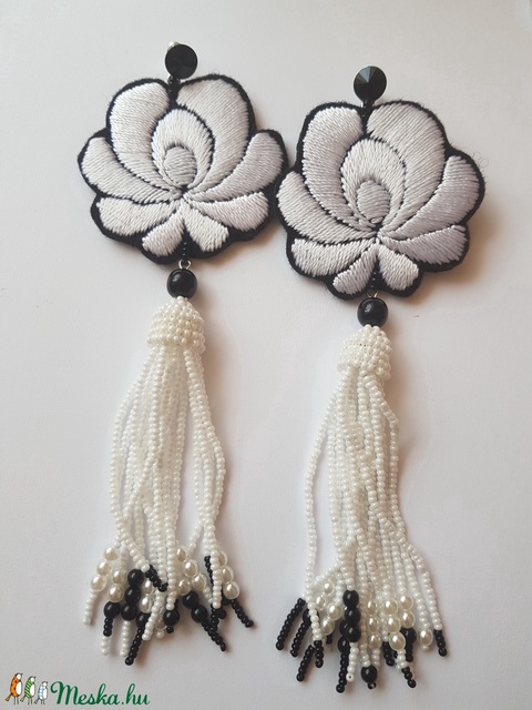Fehér Matyó rózsa fülbevaló