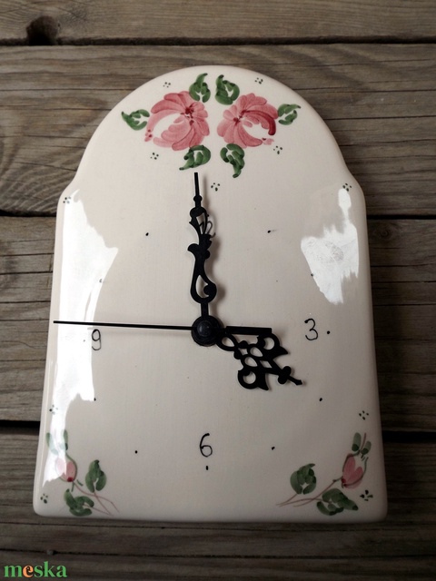 Rózsás -csipkés romantikus kerámia óra
