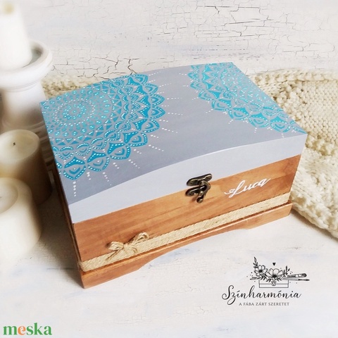 Hogy még személyesebb és egyedibb legyen az emlékdobozod, kérheted ELEJÉRE festett rövid EGYEDI FELIRATTAL/NÉVVEL ill. EGYEDI BELSŐ FELIRATTAL (ld. utolsó fotón; nyomtatott trendpapír) is plusz költségek nélkül és az elkészítési idő sem tolódik el miatta.
