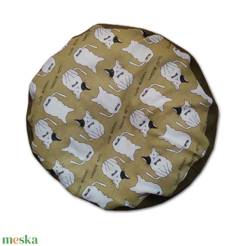 - Anyag/Összetevő zöld vászont, cérna, polisztirol gyöngy, cipzár, kevert szálas pamutvászon, tépőzár, zöld cicamintás vászon