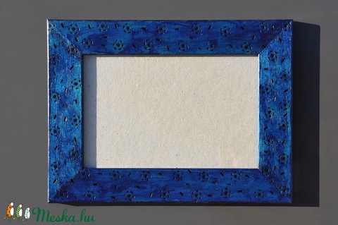 Pirogravírozott mintás, kék képkeret