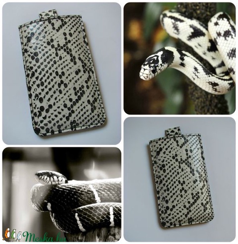 Fekete fehér kígyó mintás bőr telefontok, mobiltok