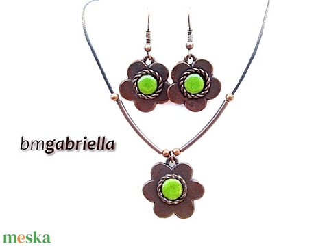 Zöld alandor - tűzzománc fülbevaló és nyaklánc - egyedi tervezésű kézműves ékszerszett