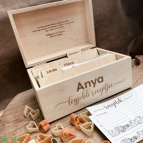 Egyedi Receptdoboz recept lapokkal Díszdobozban