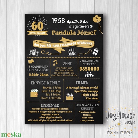 Szülinapi poszter felnőttnek krétatábla stílusban - nyomtatható, digitális fájlformátumban, nem fizikai termék