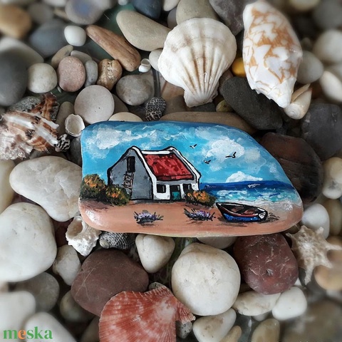 Kézzel festett kavics - tengerparti ház