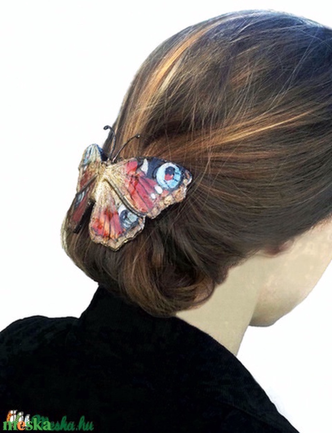 Francia hajcsat: Kézzel festett Pápaszemes lepke tiffanyból