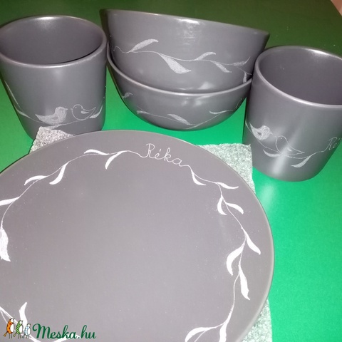 Grafitszürke, páros reggelizőkészlet gerlepárral