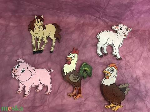 Kézzel készített fa hűtőmágnes csomag - háziállatok, farm