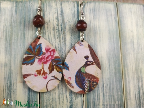 - Anyaga: fa alap, szalvéta, karneol gyöngy, gyöngy kupak, fa
