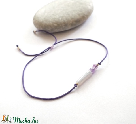 Pont, pont, vesszőcske... kalcedon, ametiszt, fluorit zsinóros - csúszócsomós karkötő