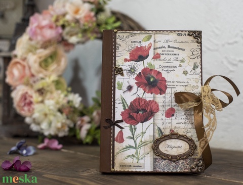 nátron papír, háttérpapír, akrilfesték, lakk, bronz kiegészítők, szatén