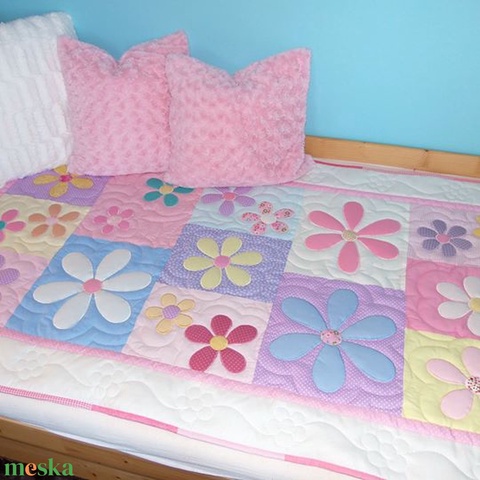 Pasztell, virágos, steppelt ágytakaró gyerekszobába